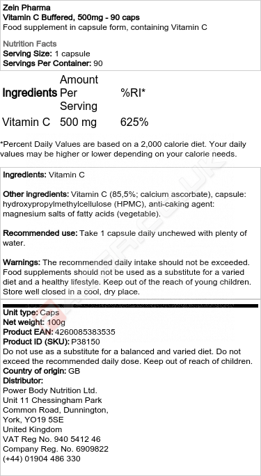 ZEIN VITAMIN C BUFFERED, 500MG - 90 KAPSLAR