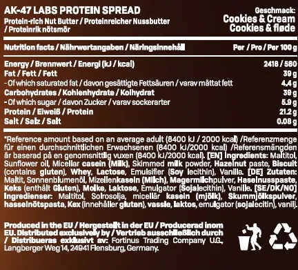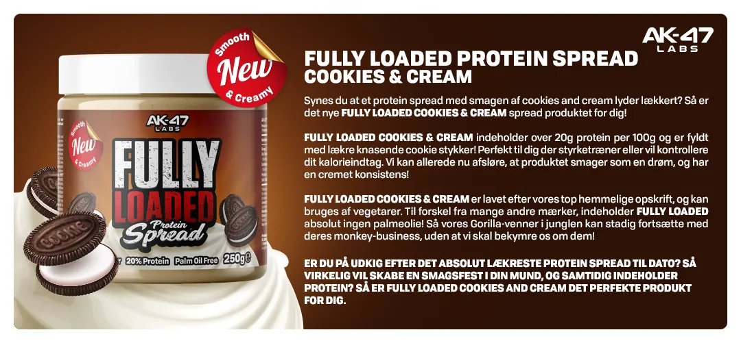 LOADED PROTEIN SPREAD indeholder over 20 gram protein og mindre end 3 gram sukker per 100 gram. Det er perfekt for dig, som vil spise sødt med god samvittighed. Smør det ud over dit brød om morgenen, eller kør den helt grove, og gå all-in med en ske direkte fra glasset. Maksimal nydelse til en minimal pris!