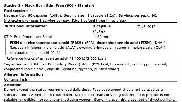 Black Burn Stim Free er et anderledes og koffeinfrit produkt fra Stacker2. Produktet består af 100% naturlige olier, og ingen stimulanser. I og med produktet er koffeinfri, er det ideelt til dig, som ikke bryder sig om den følelse koffein giver dig .- særligt om aftenen inden sengetid.