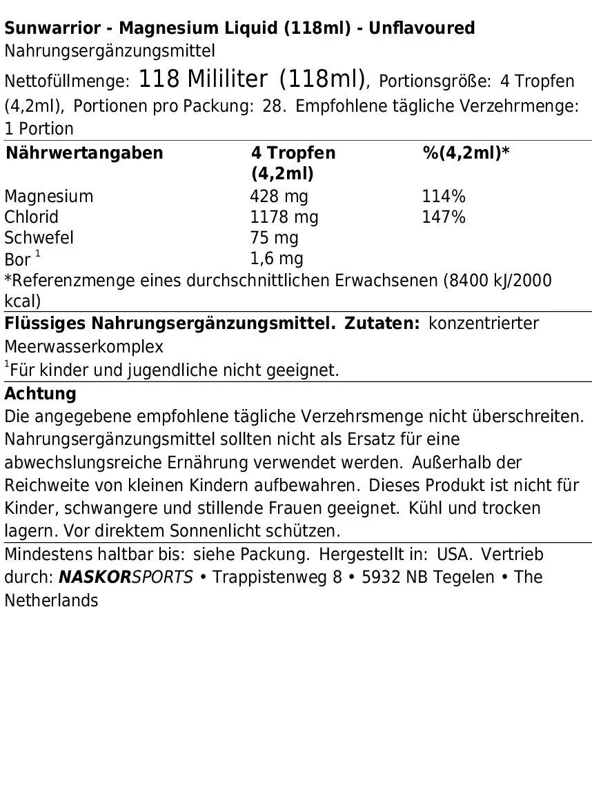 SUNWARRIOR MAGNESIUM LIQUID (118ML) UNFLAVOURED