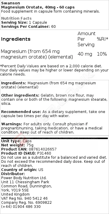 SWANSON MAGNESIUM OROTATE, 40MG - 60 CAPS
