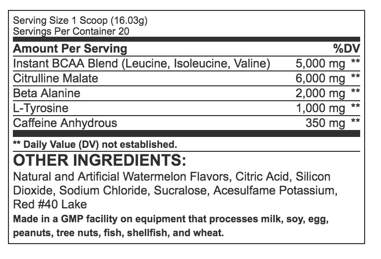 Du får i hver servering 5 g BCAA aminosyrer, som bidrager til fedtfri muskelvækst og en øget udholdenhed. Derudover får du hele 6 g citrullin malat, som vil hjælpe dig til et intenst pump. Animal Fury giver dig desuden hele 2 g beta-alanin og 350 mg koffein. Du vil derfor opleve et knivskarpt fokus, og mærke dit energiniveau stige. Sidst, men ikke mindst indeholder Animal Fury 1 g af aminosyren tyrosin, som har en positiv effekt på dit mind-set. Tyrosin hjælper dig til at mindske stress, og bevare din koncentrationsevne.