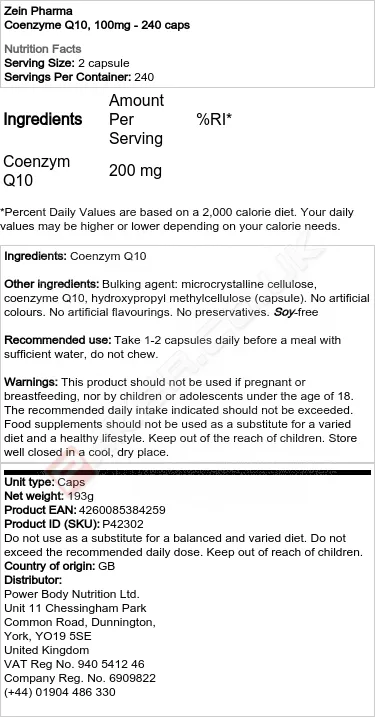 ZEIN COENZYME Q10, 100MG - 240 CAPS