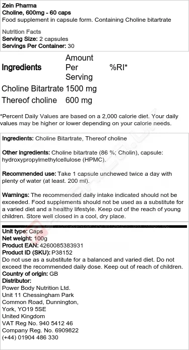 ZEIN CHOLINE, 600MG - 60 CAPS