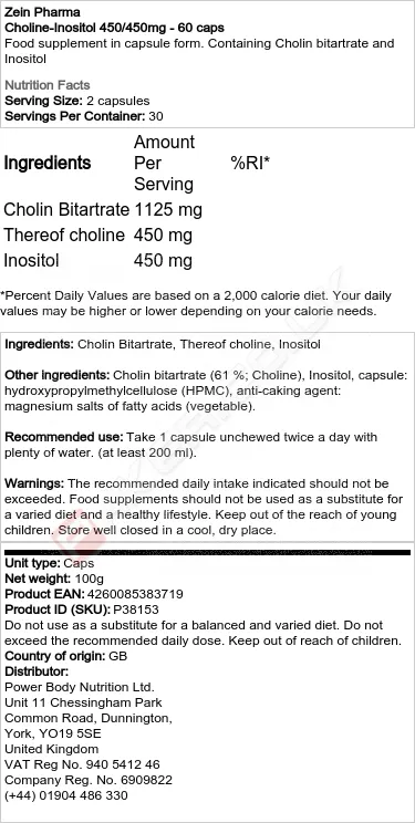ZEIN CHOLINE-INOSITOL 450/450MG - 60 CAPS