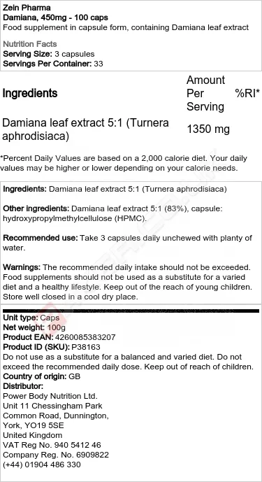 ZEIN DAMIANA, 450MG - 100 CAPS