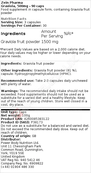 ZEIN GRAVIOLA, 500MG - 90 CAPS