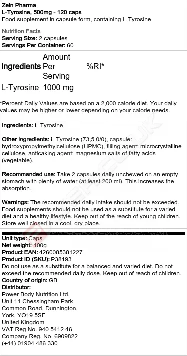 ZEIN L-TYROSINE, 500MG - 120 CAPS