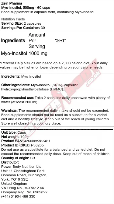 ZEIN MYO-INOSITOL, 500MG - 60 CAPS