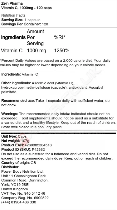 ZEIN VITAMIN C, 1000MG - 120 CAPS